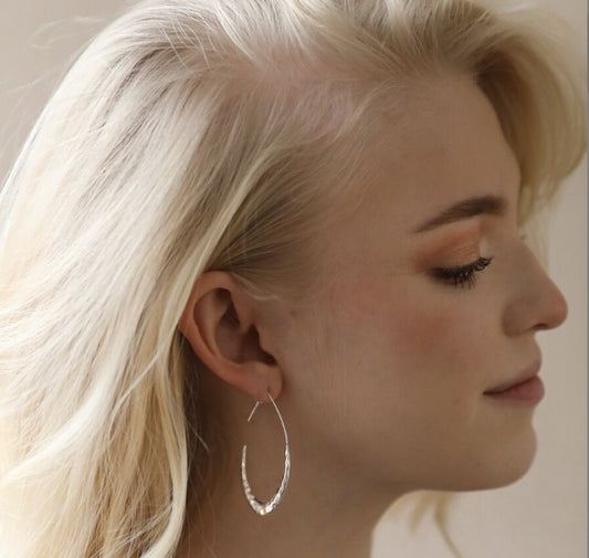 Lisa Angel Hammered Teardrop Hoop Earrings in Silver